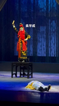 高三舞台技術及活動製作課程學生吳宇成(站在椅上者),日前於廣東粵劇藝術中心登場,在《2025粵港澳粵劇新星匯》中參與演出經典劇目《漢宮驚魂》。