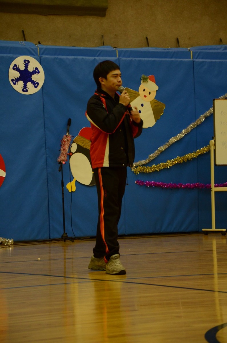 陳英倫校長在致詞中讚揚同學不畏嚴寒、抖擻精神準時上學的良好表現;提醒同學要時刻警醒、遠離損友,切勿將自己置身險境;勸勉同學善用假期,充實自己。校長並以身體力行,將會在聖誕期間帶領同學到台灣攀登雪山勇闖高峰。