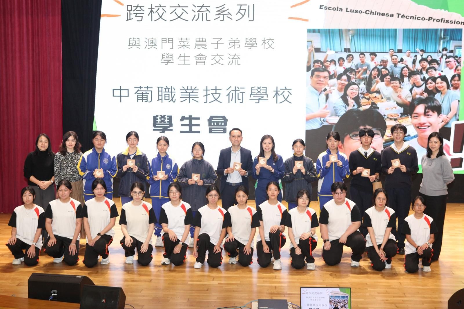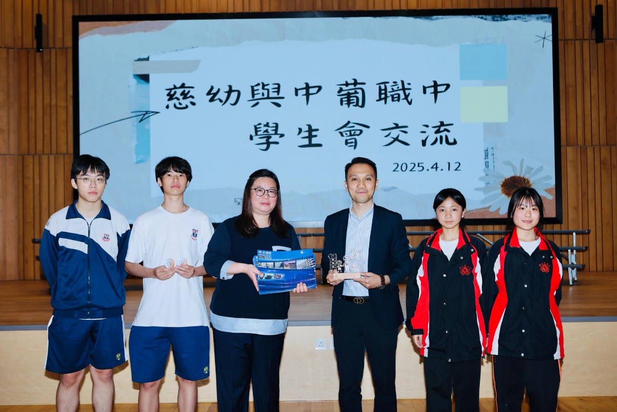 - 在本校與澳門慈幼中學兩校領導帶領下,兩校學生會骨幹成員熱切交流並互相致送紀念品