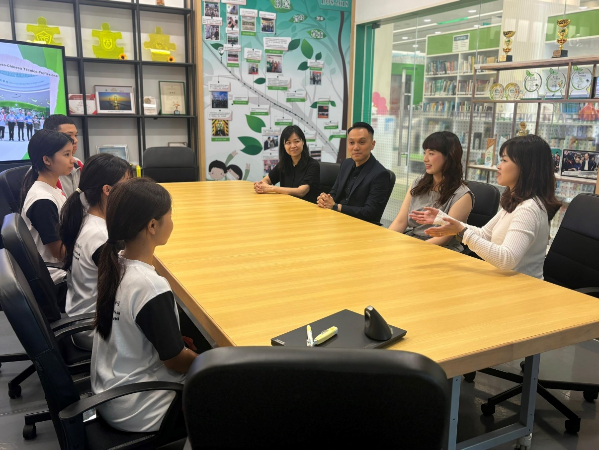 - 本校學生會幹事向阮舒淇介紹本校學生會會務,以及學校職業技術教育課程的特色,並分享參與學生會工作點滴。